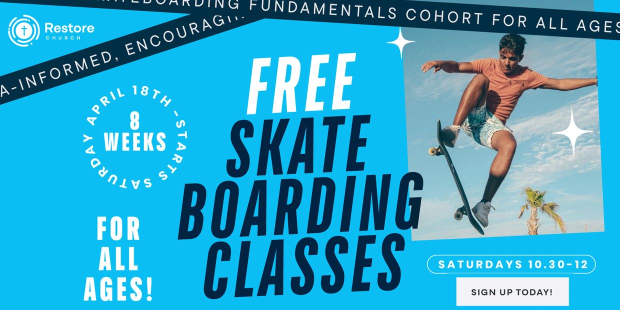 Restore Church is partnering with Faith Skater Ministries to bring you a special 8-Week Skateboarding Fundamentals Class for all ages - and it’s totally FREE!
